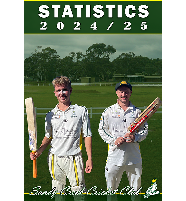 The end of season stats book is now available via the following link: https://sandycreekcc.com.au/wp-content/uploads/2025/03/SCCC-Stats-Book-2024-25.pdf